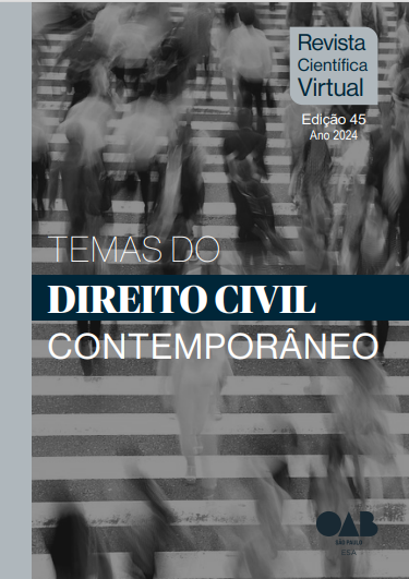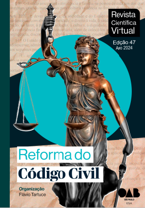 Vol. 1 No. 47 (2024)A 47a edição da Revista Científica Virtual da ESA OAB SP marca um momento significativo na evolução do pensamento jurídico bra- sileiro, oferecendo uma análise aprofundada e multifacetada das propostas de atualização do Código Civil. Esta edição especial reúne um conjunto notável de artigos que refletem as profundas transformações sociais, tecnológicas e jurídicas que nossa sociedade enfrenta nos limiares do século XXI. Os trabalhos aqui apresentados não apenas examinam as mudanças propostas, mas também oferecem reflexões instigantes sobre suas implicações para o futuro do direito civil no Brasil.